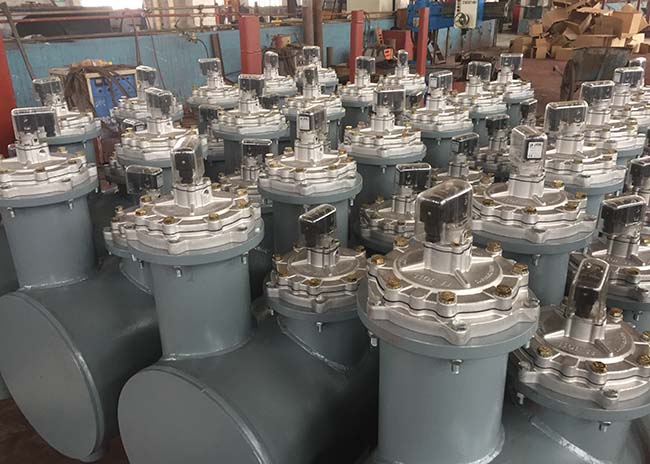 Пневматикалык резервуарга орнотулган импульстук клапандарды биз Кытайдын Чжэцзян провинциясында өнөр жай чаң коллекторлорун чыгарган ири заводдорго жеткиребиз.