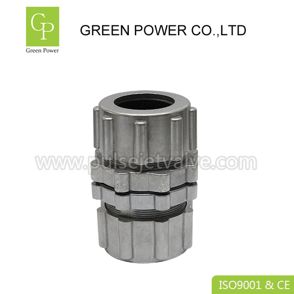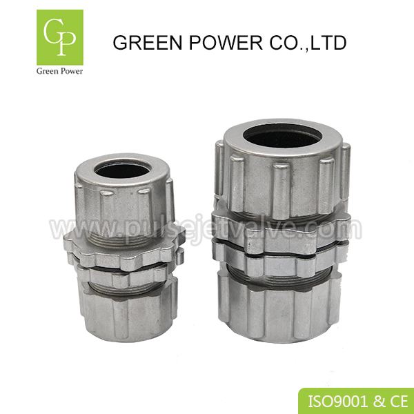 The PD50 is a double head bulkhead quick connector designed specifically for the secure and reliable installation of pulse valves in bag house dust collector systems.It provide a sealed pass-through connection from the compressed air supply pipe (outside the bag house) directly to the pulse valve inlet. The key feature is its integrated bulkhead nut and sealing gasket, which allows for easy mounting through a hole in the collector metal wall.